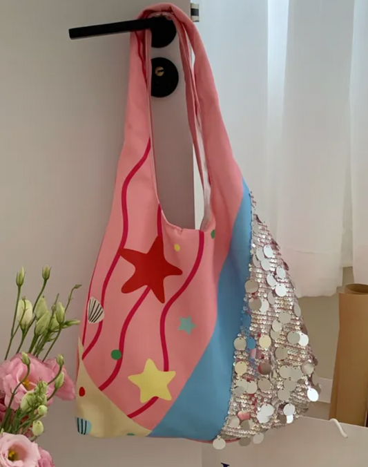 Cartera de Mano (Tote Bag) - Diseño de Estrellas y Lentejuelas